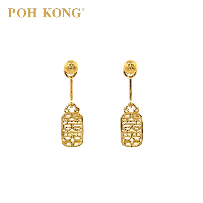 916/22K Happy Love Double Happiness Dangling Earrings