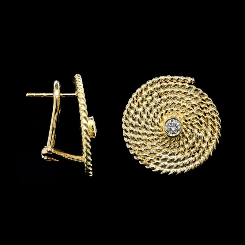 - A.G.A. Correa & Sons 18K Yellow Gold Estate Diamond Flemish Coil Earrings