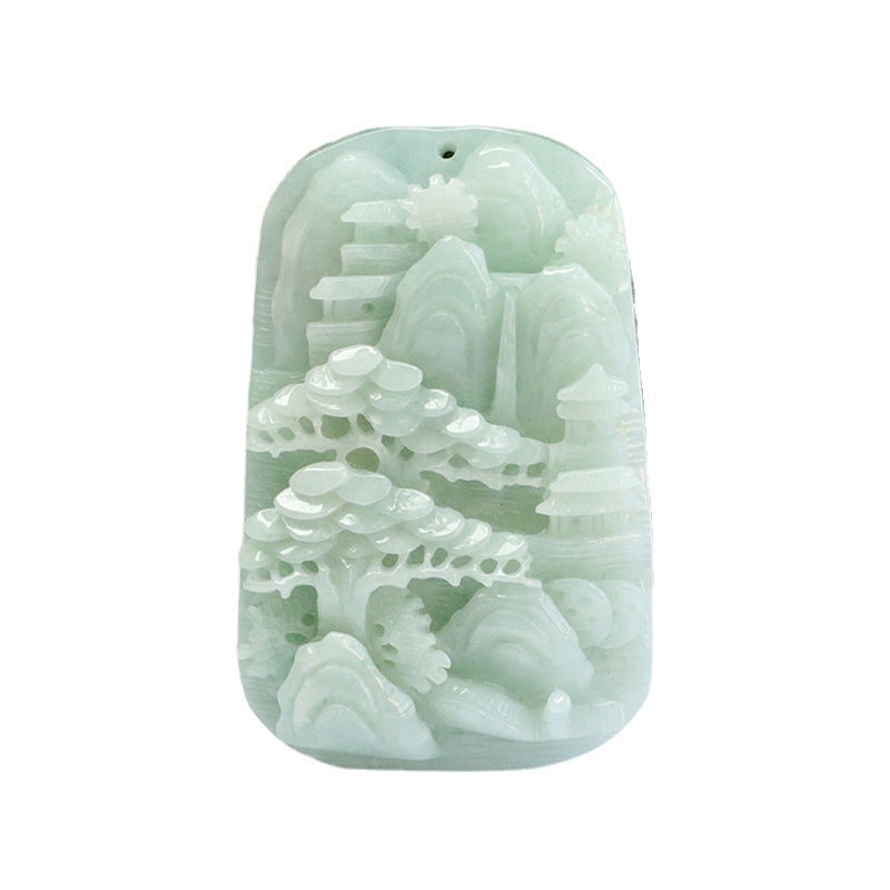 A-grade Natural Myanmar Jade Pendant with Detailed Landscape Sculpture Crafted in High Quality Jade