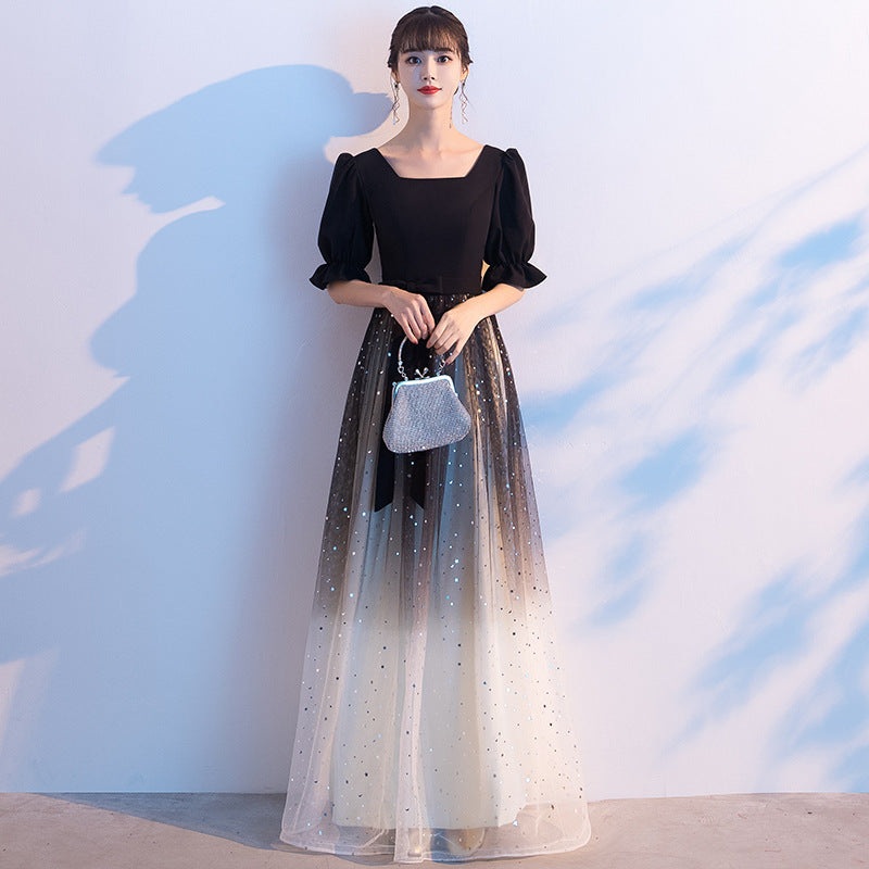 Product NO. :553Dress style: A lineFabric:TulleColor: Black,NavyWaist type:Mid waistDress length: Long,Mid longSleeve length: Mid sleeves