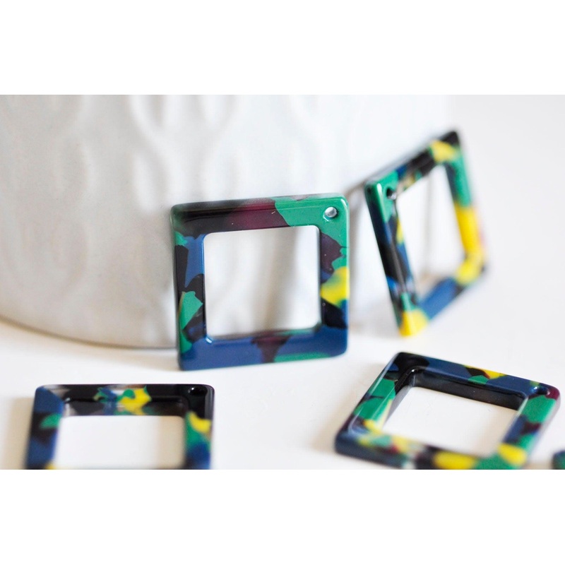 Acetate colored square pendant 30.5mm,plastic jewelry creation,plastic connector, x 5 -G0225