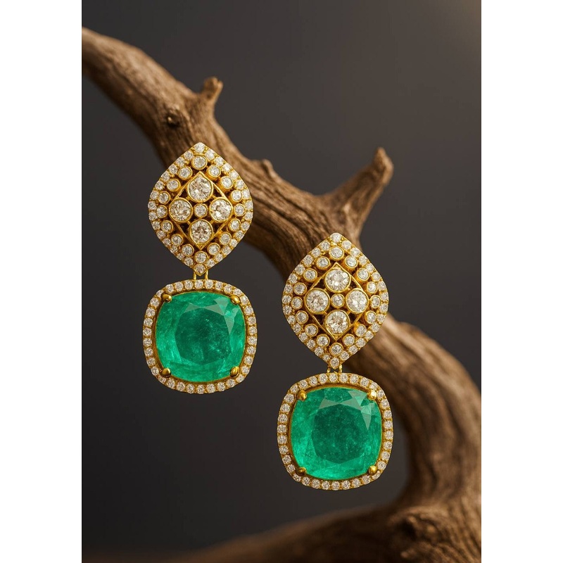 AD Ethnic Earrings | Moissanite Indian Earrings Green