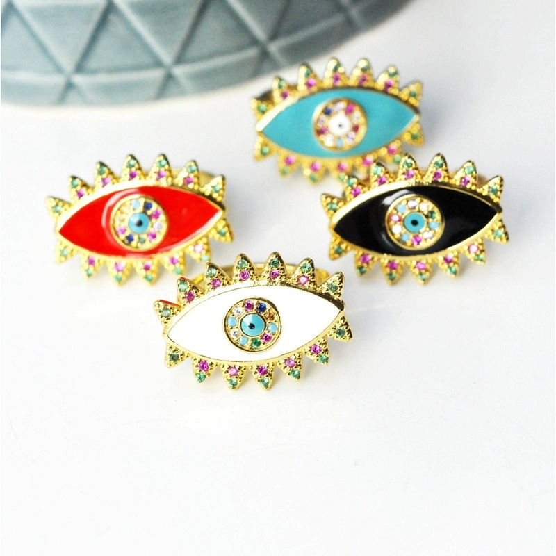 A very beautiful ring holder in enameled gold-plated brass, decorated with a protective eye decorated with zircons.
