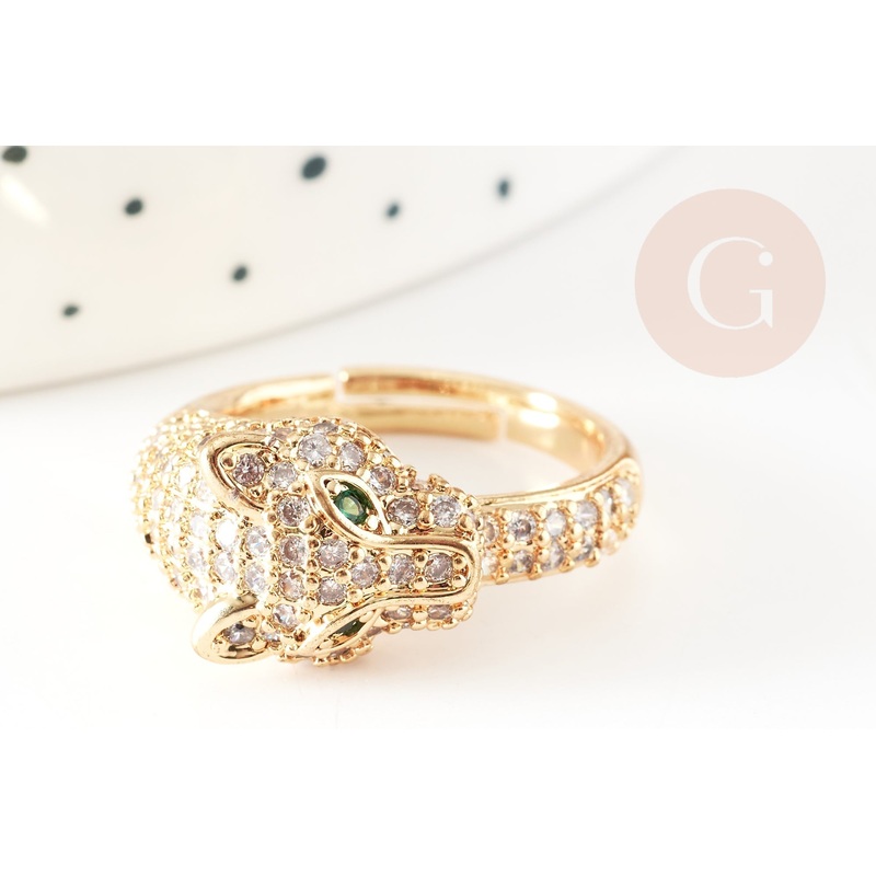 Adjustable ring in gold-plated brass with leopard and white zircons 17mm, x1 (G4361)