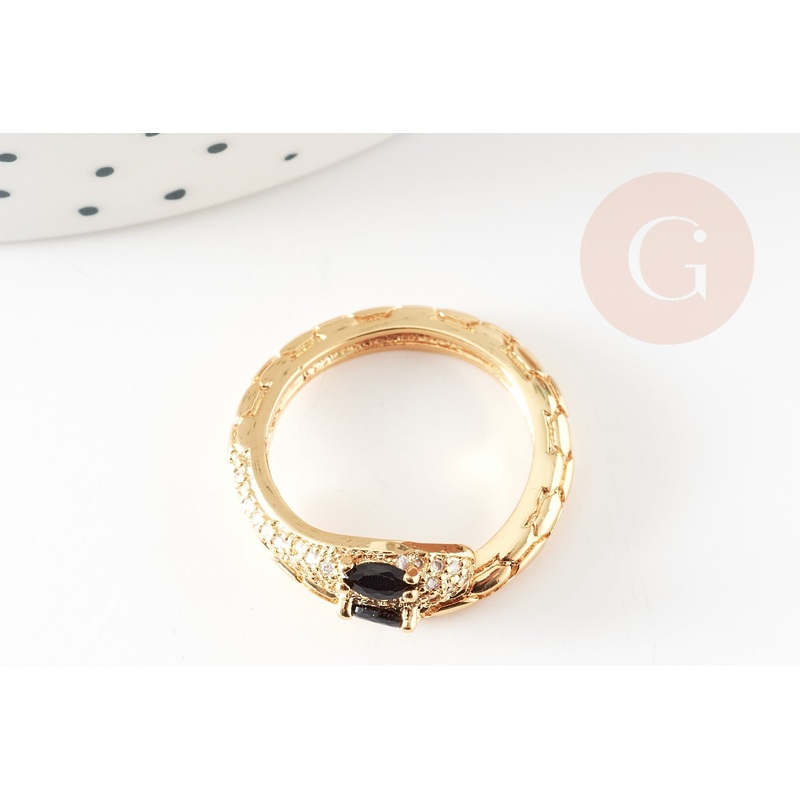 Adjustable ring with gold-plated brass snake and black zircon 17mm, x1 (G4360)