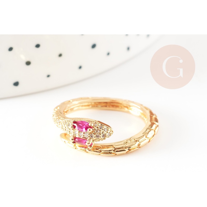 Adjustable ring with gold-plated brass snake and red zircon 17mm, x1 (G4352)