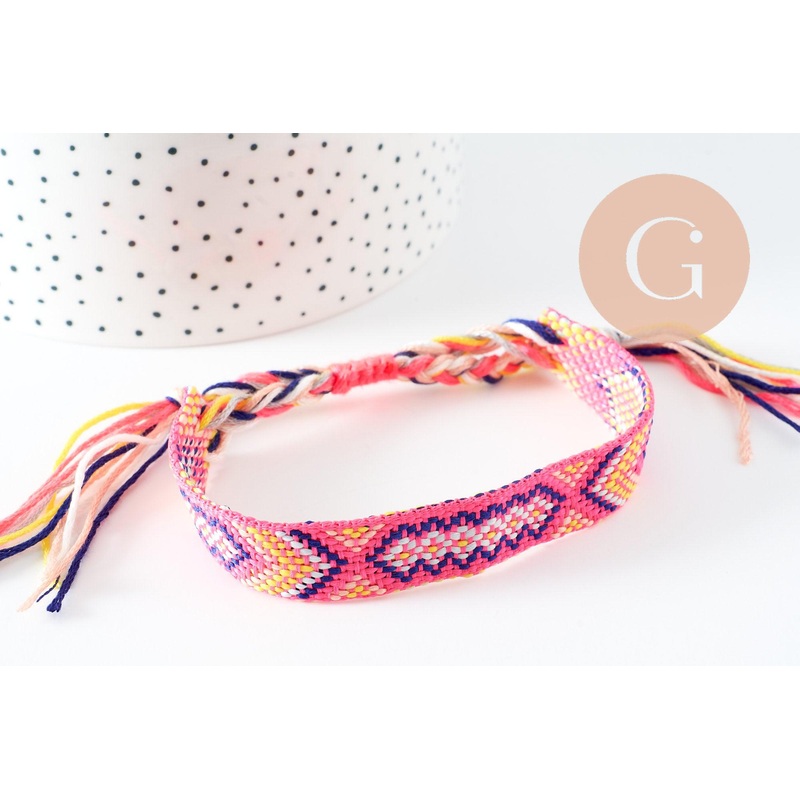 Bring a pop of color and symbolism with this woven Brazilian bracelet in vibrant shades of pink and yellow . With its 15 mm width and its practical adjustment system, this jewel adapts to all wrist sizes. Symbol of friendship and luck , it is perfect for e