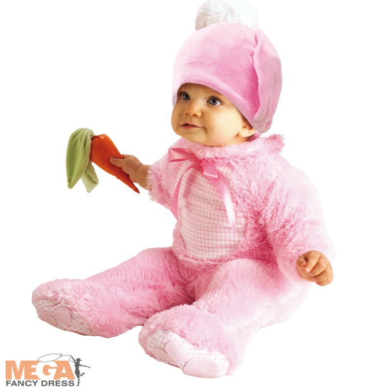 Babies Precious Pink Rabbit Fancy Dress Costume Awww, transform your little one into an adorable bunny wabbit with this fantastic costume, perfect for Easter. Included is a beautiful pink plush romper suit decorated with pink and white gingham detailing to