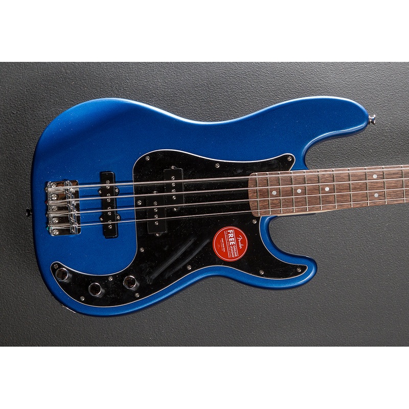 Lake Placid Blue, Crafted in Indonesia, Gloss polyurethane body finish, Poplar body, C shaped Maple neck with a 9.5 radius Indian Laurel fingerboard and medium jumbo frets, 34″ scale length, 1.625″ nut width, Ceramic single coil Jazz Bass bridge and Ceramic split single coil Precision Bass neck pickups with the volume/volume/tone controls, Four saddle standard bridge and vintage style open gear tuners, 8.6 pounds, Case not included