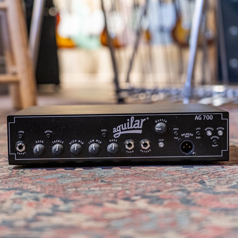 This used Aguilar AG700 bass amp head offers 700 watts of clear, punchy solid-state power in a lightweight 4.9 lb design. It includes a full EQ, deep and bright switches, plus an effects loop for versatile tone control. Renowned for its precise response an
