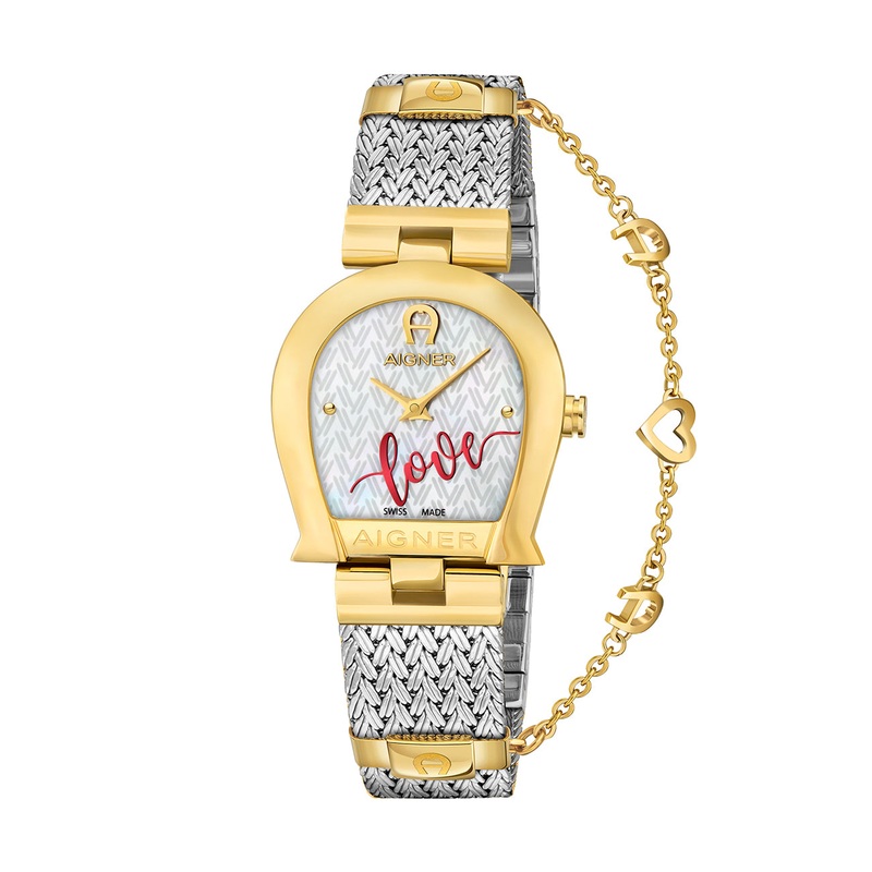 AIGNER CREMONA NUOVO LADIES TWO TONE YELLOW GOLD BRACELET WHITE MOP DIAL WATCH