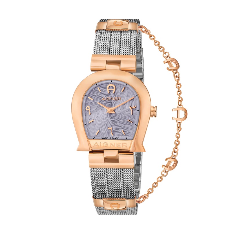 Aigner Women’s Stainless Steel Case Mesh Bracelet Lilac Dial Watch