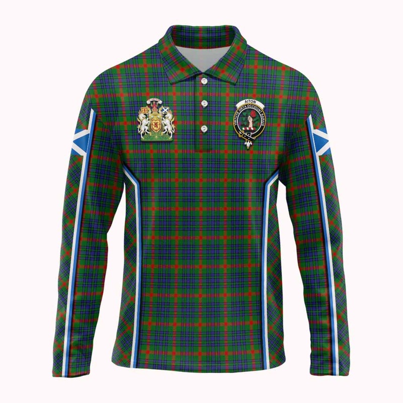 Aiton Tartan Crest Long Sleeve Polo Shirt Scotland Coat of Arm Flag Style