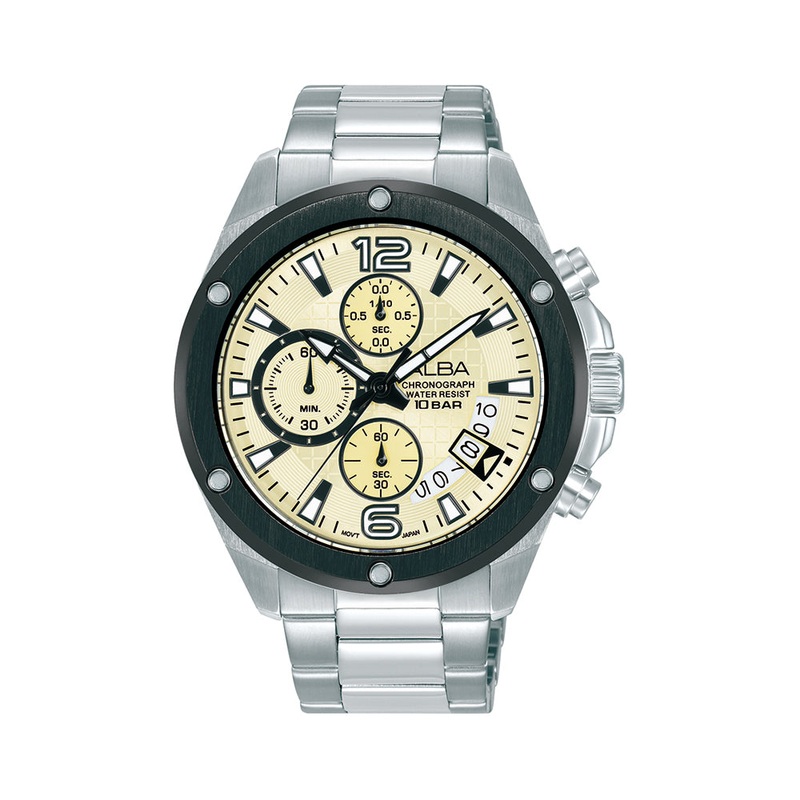 Watch technical specs GenderGentsCase ShapeRoundCase Size43mmCase MaterialStainless SteelBandBraceletStrap MaterialStainless steelMovementAlba VD57Movement Function3 hands with date, 60 minute chronograph 1/10th second subdialWater Resistance10 ATMWarranty