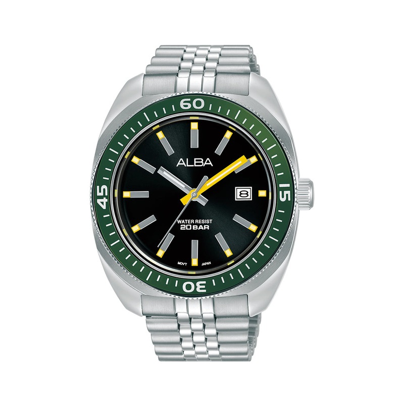 Watch technical specs GenderGentsCase ShapeRoundCase Size43mmCase MaterialStainless SteelBandBraceletStrap MaterialStainless steelMovementAlba VJ42Movement Function3 hands with dateWater Resistance20 ATMWarranty1 Year International