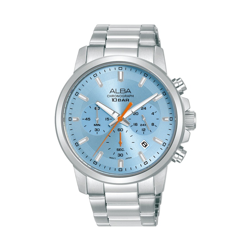 Watch technical specs Strap MaterialStainless steelCase ShapeRoundMovementQuartzGenderMenCase Size42mmMovement Function3 hands with date, 60 minute chronograph and 24 hour subdialWater Resistance10 BARWarranty1 Year International