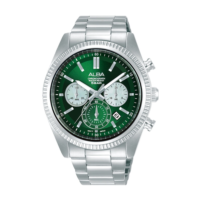 Watch technical specs GenderGentsCase ShapeRoundCase Size42mmCase MaterialStainless SteelBandBraceletStrap MaterialStainless steelMovementAlba VD53Movement Function3 hands with date, 60 minute chronograph and 24 hour subdialWater Resistance5 ATMWarranty1 Y