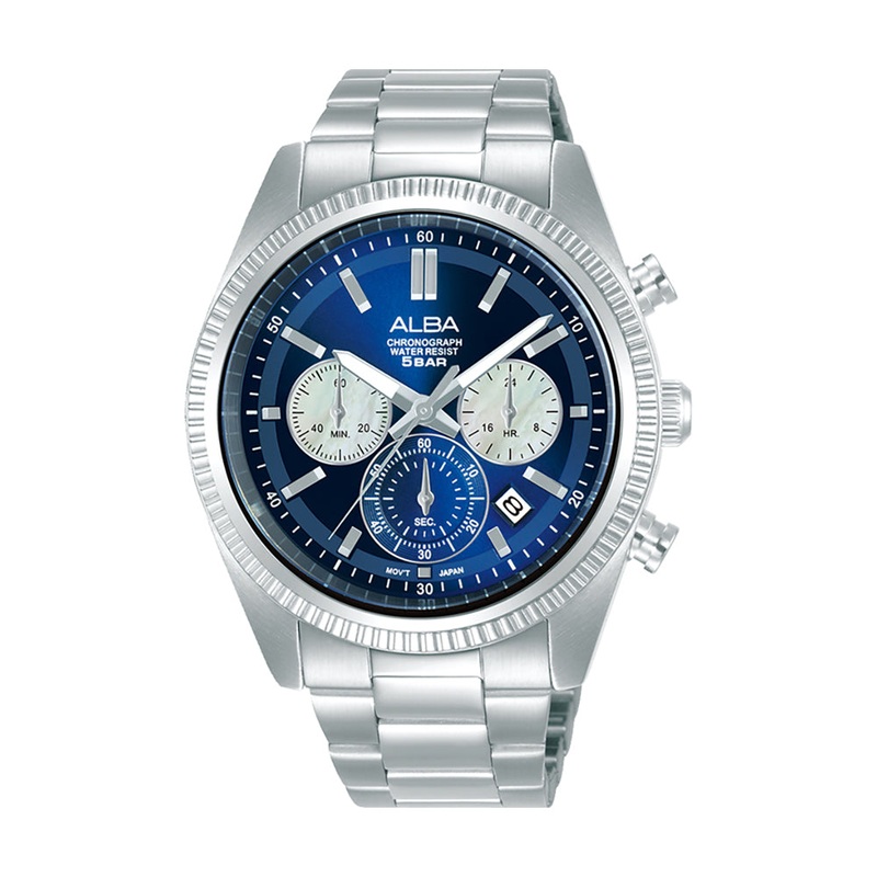 Watch technical specs GenderGentsCase ShapeRoundCase Size42mmCase MaterialStainless SteelBandBraceletStrap MaterialStainless steelMovementAlba VD53Movement Function3 hands with date, 60 minute chronograph and 24 hour subdialWater Resistance5 ATMWarranty1 Y