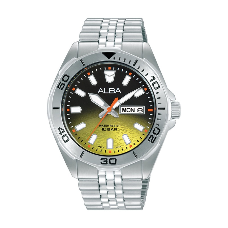 Watch technical specs GenderGentsCase ShapeRoundCase Size42mmCase MaterialStainless SteelBandBraceletStrap MaterialStainless steelMovementAlba VJ43Movement Function3 hands with day and dateWater Resistance10 ATMWarranty1 Year International