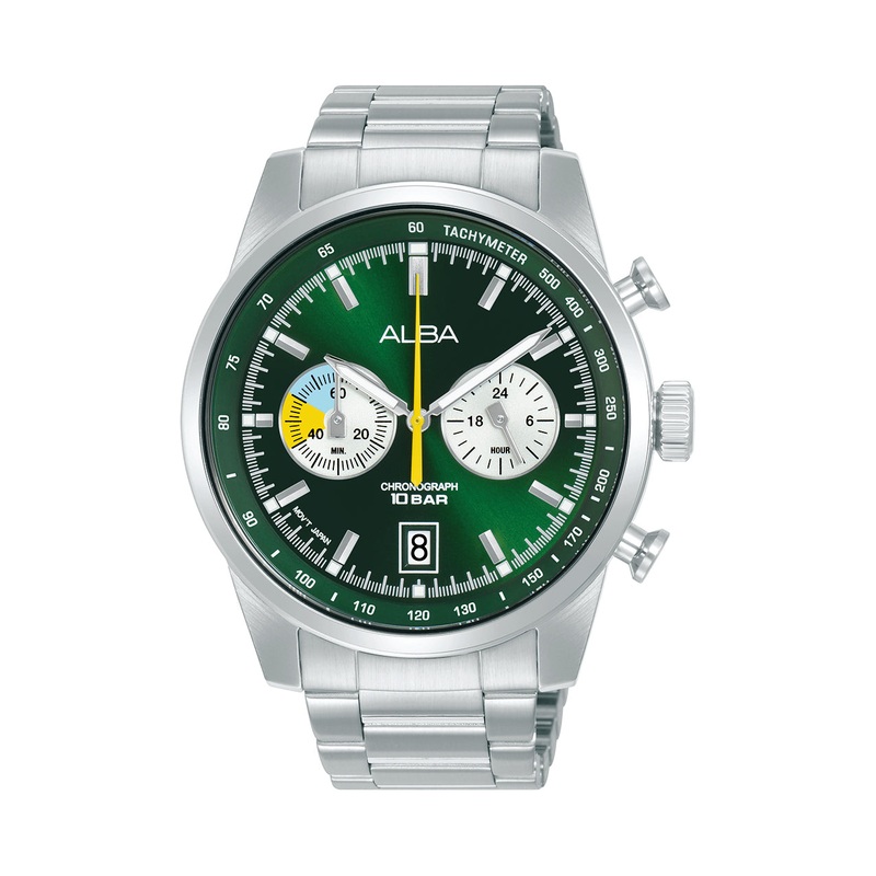 Watch technical specs Strap MaterialStainless steelCase ShapeRoundMovementQuartzGenderMenCase Size44mmMovement Function3 hands with 60 minute chronograph and 24 hour subdialWater Resistance10 BARWarranty1 Year International