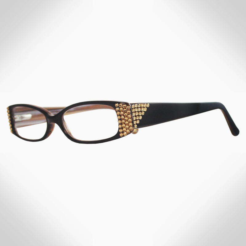 The handmade frame is cut from a single sheet of acetate to maintain consistency of color Polycarbonate lenses use the most impact-resistant material available for eyewearto offer maximum eye protection Features stunning crystals, which are set by Jimmy Cr