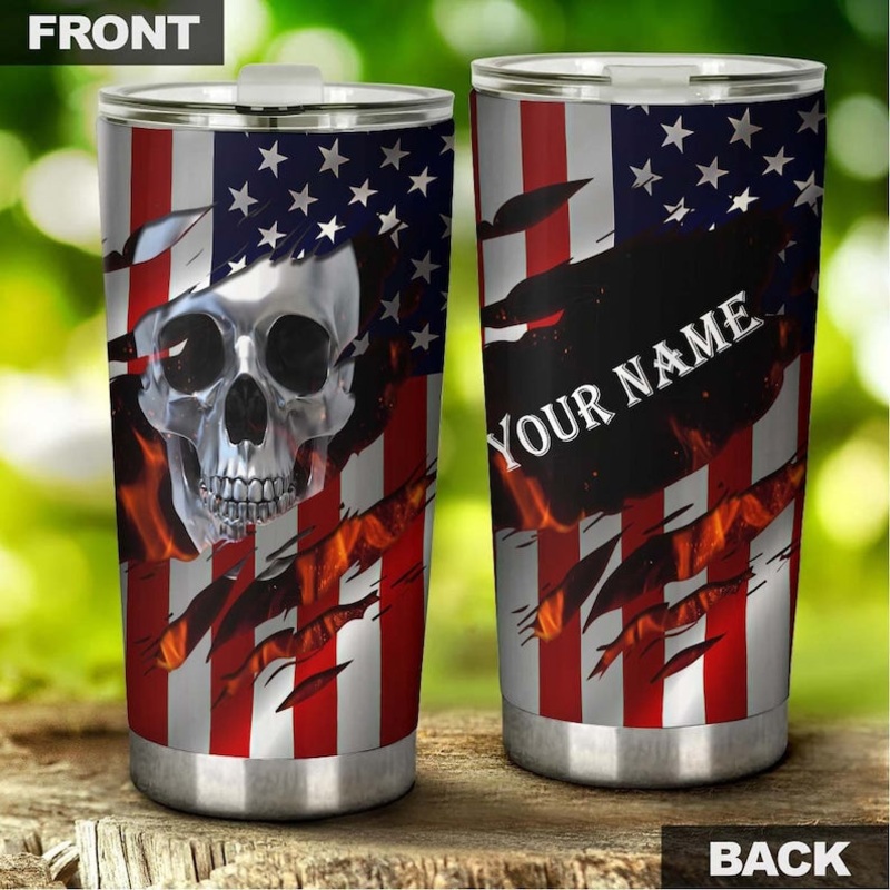 American Flag Skull Personalized Fancy Unique Tumbler-Skull Tumbler-Skull Birthday Gift Christmas gift for her for him
