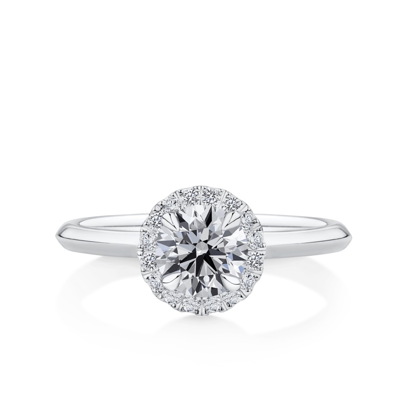Live brightly and cast light in every direction with this 1.02 carats halo of luminescent diamonds. Set in platinum, this modern design embraces a classic style which is only heightened by its exceptional Brilliance, Fire and Sparkle.