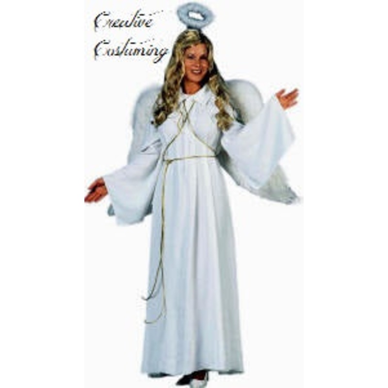 Includes: Long white pleated spun cotton gown accented with billowed sleeves and gold cord wrap belt.Color: White (shown)Misses Size: Std (4-10)