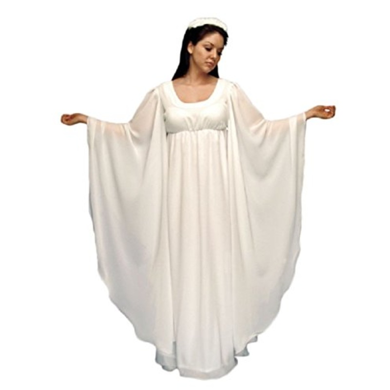 Tranquil beauty at its best.Includes: Angelic empire waist gown accented with wire hemmed flowing sleeves & skirt.Both bodice & skirt are lined.Color: White ***Chiffon fabric flows nicely***Size (Bust): S (34), M (36),L (39), XL (42)Made in USA /White Chif