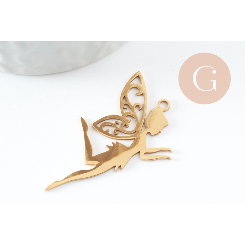 Adopt this magnificent Tinkerbell angel pendant in gold-plated 201 stainless steel. 201 stainless steel guarantees great durability and resistance to oxidation. This angel fairy pendant is perfect for creating enchanting necklaces, bracelets or key rings.