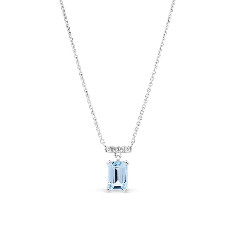 Aquamarine & Diamond Necklace in 9ct White Gold