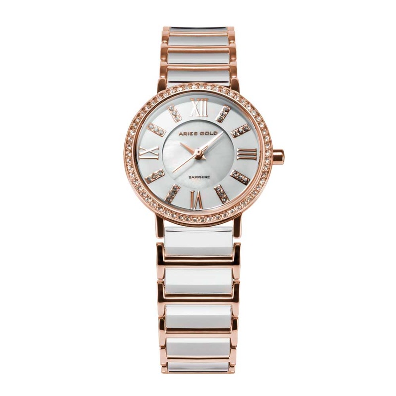 ARIES GOLD ENCHANT GLITTER ROSE GOLD STAINLESS STEEL PS 310L RG-WHITE CERAMIC WOMEN’S WATCH