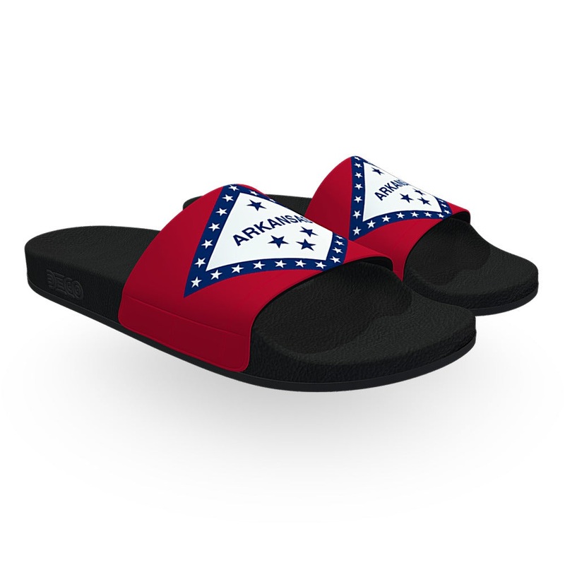 Slides featuring the red white and blue diamond and stars Arkansas state flag