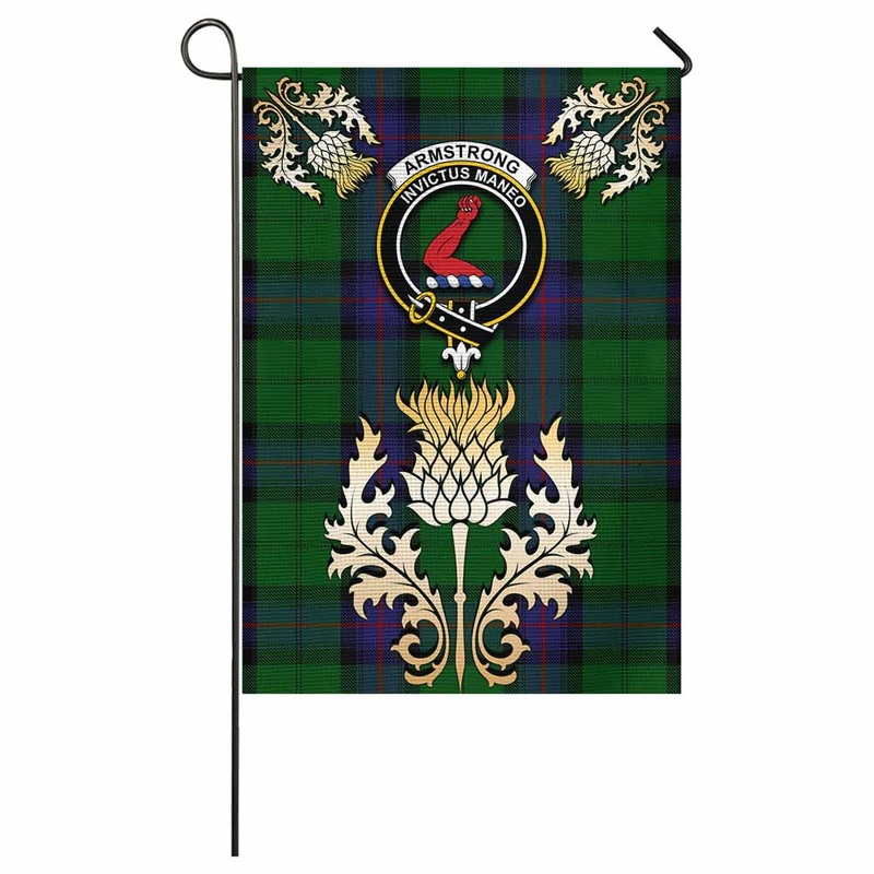 Armstrong Tartan Garden Flag with Golden Regal Scottish Thistle Emblem