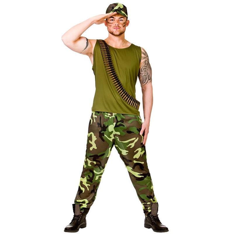Army Guy Costume Includes Tank Top Camouflage Trousers Camouflage Hat