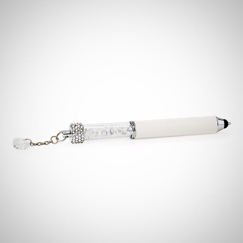 - Surprise your friends and family with this perfectly subtle yet glamorous gift.Our elegant Jimmy Crystal stylus plus ballpoint pens areavailable in black and white that will provide that delicate sparkle every time you write.