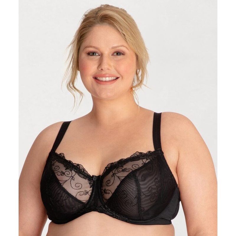 Ava & Audrey Elizabeth Embroidered Full Cup Underwired Bra – Black 36DD