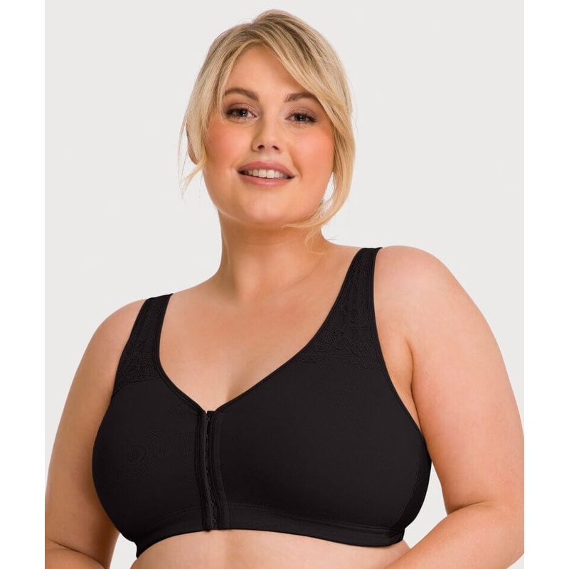 Ava & Audrey Hannah Cotton Wire-Free Front Opening Bra – Black 36DDD