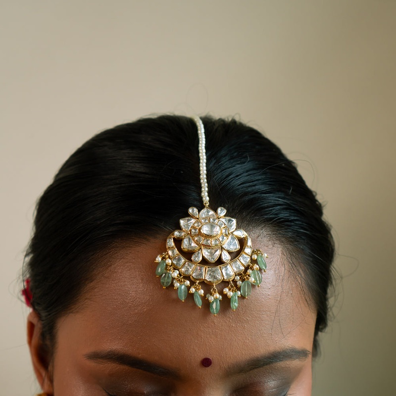 Note: Crescent Moon Design | Polki Earrings | Green Beads & Pearls
