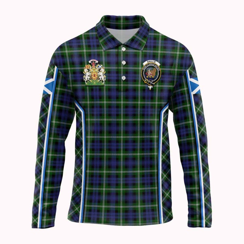 Baillie (Bailey) Tartan Crest Long Sleeve Polo Shirt Scotland Coat of Arm Flag StyleHighlight Made by Materials: Polyester. About this item Discover the perfect blend of tradition and modern style with our long sleeve polo shirt, featuring the iconic Scott