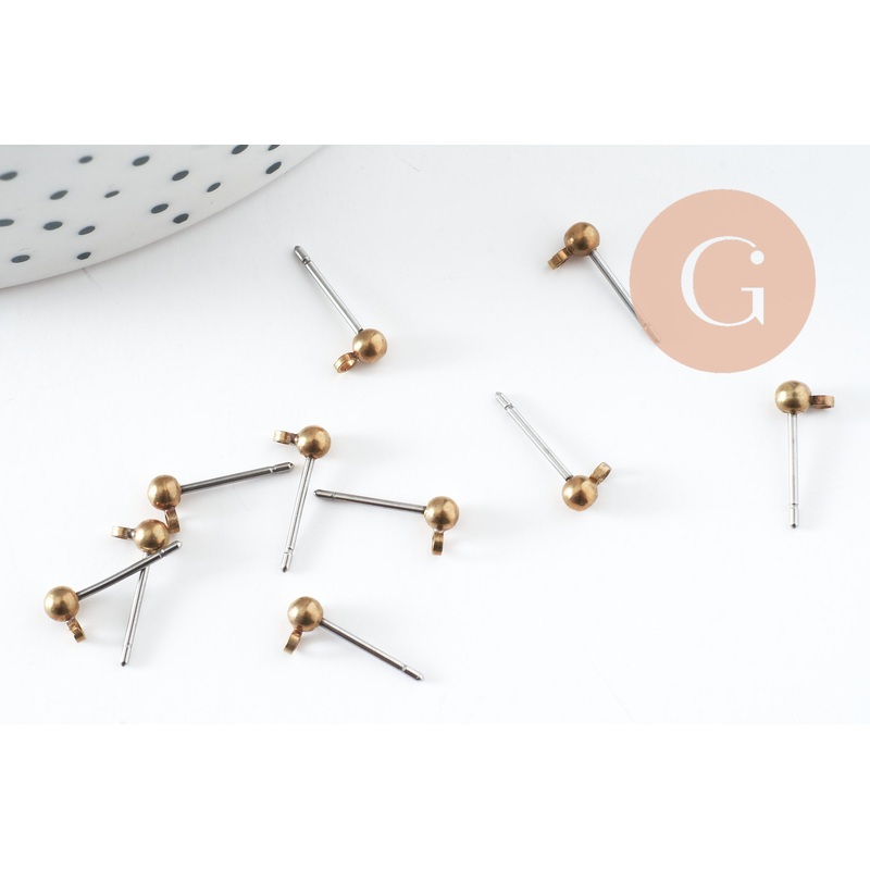 Ball stud earrings raw brass steel stainless steel 4mm, x10 (G1269)