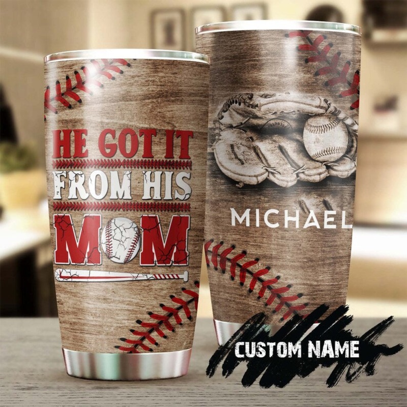 Baseball He Got It From His Mom Personalized Tumbler-Birthday Christmas Gift Mother's day Gift for Baseball MomGift of Love: A meaningful gift for your friends, family members, wife/husband, bridesmaid/groomsmen, coworkers on birthdays, Mother's Day, Fathe