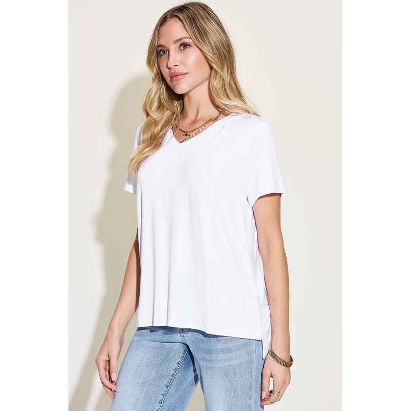 Basic Bae Full Size V-Neck High-Low T-Shirt White S