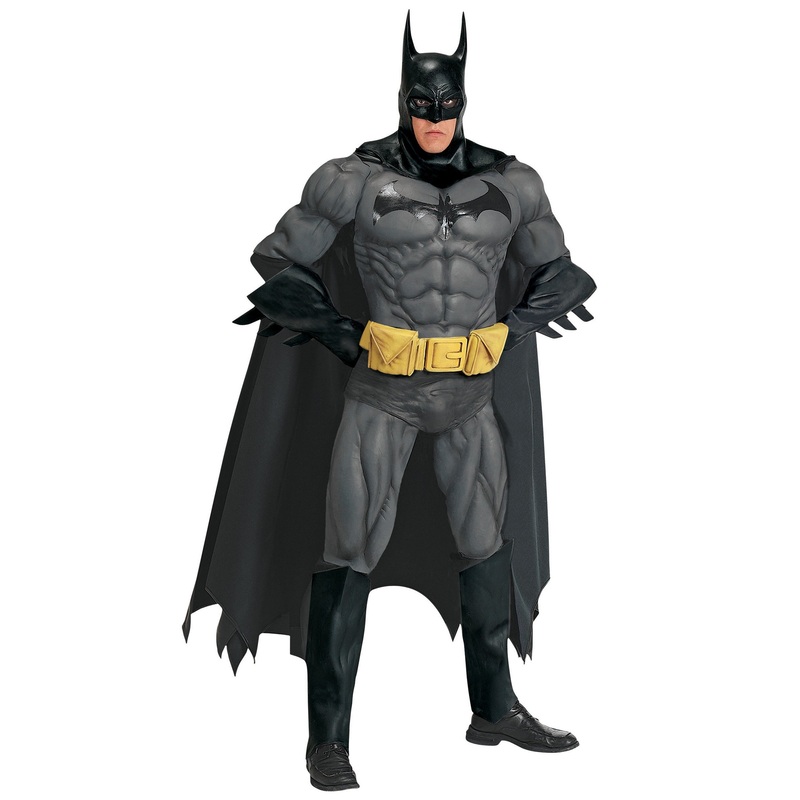 Includes: Molded Latex Muscle Chest, Latex Muscle Pants, 2 Piece Latex Muscle Arms, Latex Muscle Leggings, Latex Gloves/Gauntlets, Latex Mask with attached Cowl, Latex Utility Belt and Cape.