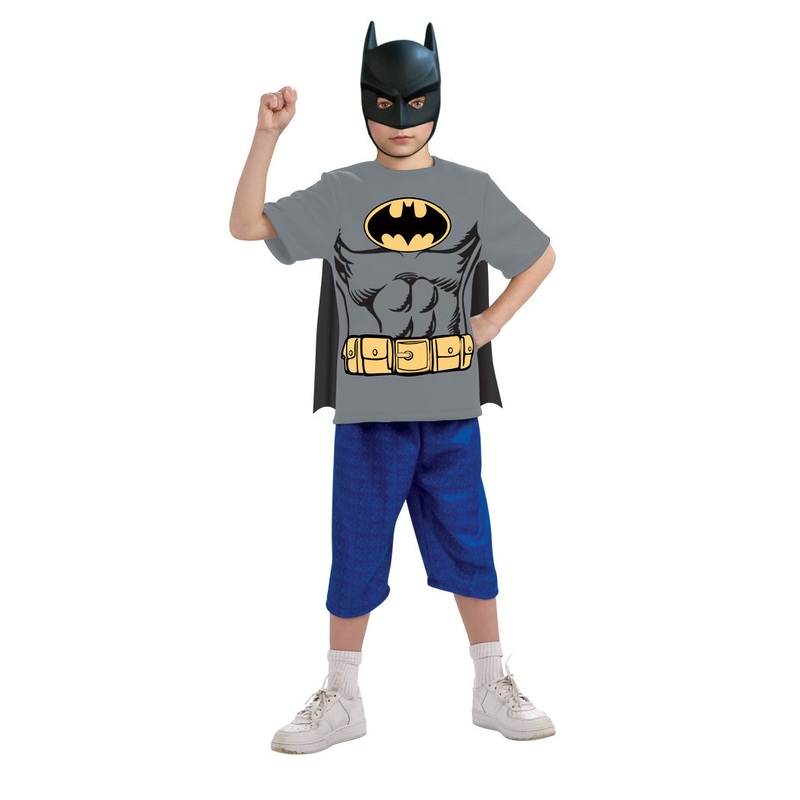 Kids Batman T-Shirt Costume Emulate the iconic appearance of Bruce Wayne also known as Batman with our Kids' Officially Licensed Batman T-shirt costume. This comic book costume comprises of everything perfect for disguising your little one as the cutest ca