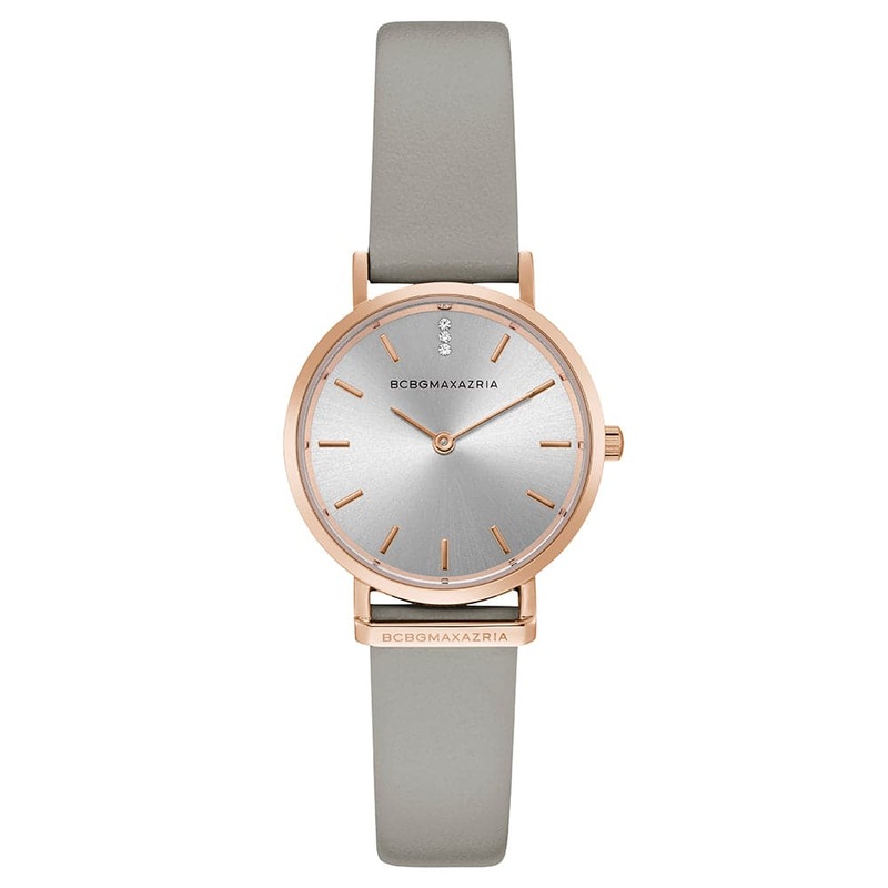 BCBGMAXAZRIA QUARTZ ROSE GOLD GREY LEATHER STRAP BG50821002 WOMEN’S WATCH