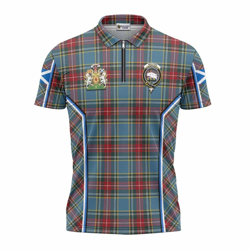 Beaton Tartan Crest Zipper Polo Shirt Scotland Coat of Arm Flag Style