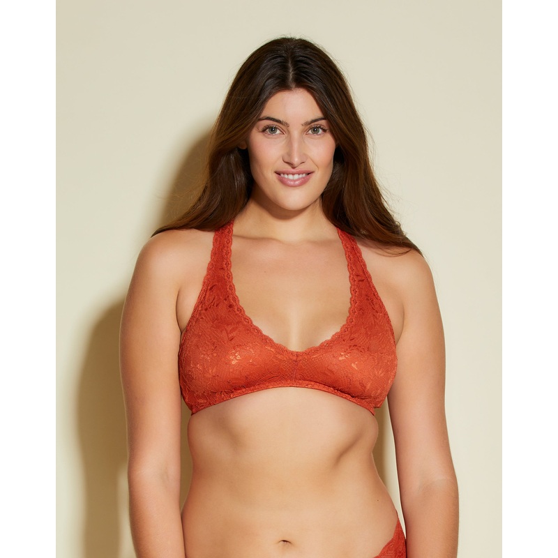 Wireless racerback lace bralette designed for smaller busts with larger bands,Soft, stretch, semi-sheer, scalloped floral Never Say Never lace.Non-padded cups lined with power mesh for support.Pull-on style with supportive band under bust.Wide, non-adjusta