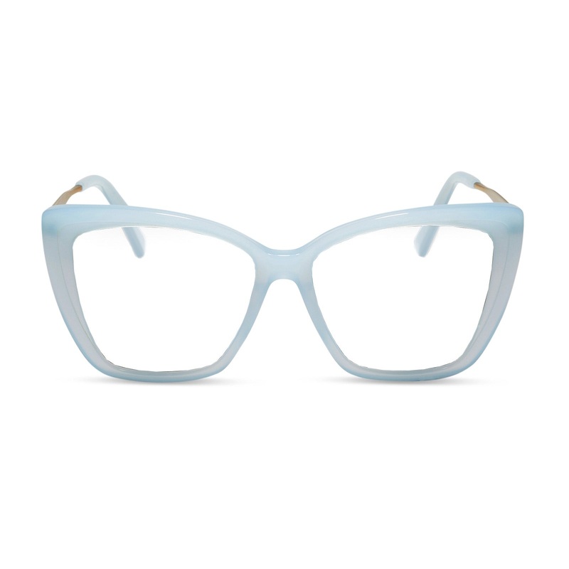 Indulge in luxury with our Becky IIBlue Dust framed glasses. These oversized, flirty cat eye frames will elevate your style and make a statement. With luxe metal temples and the option for prescription lenses, you can see and be seen in style.Looking for s