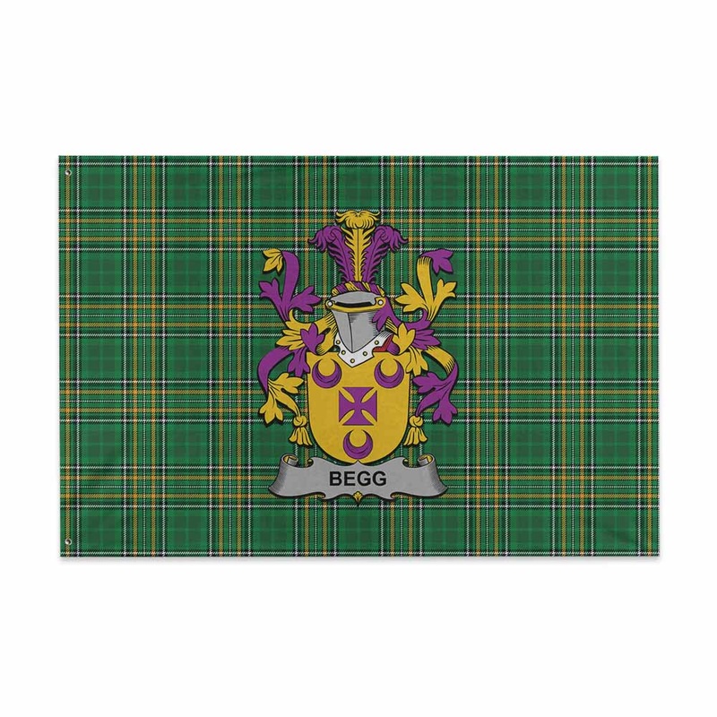 Begg Irish Clan Tartan House Flag with Coat of Arms